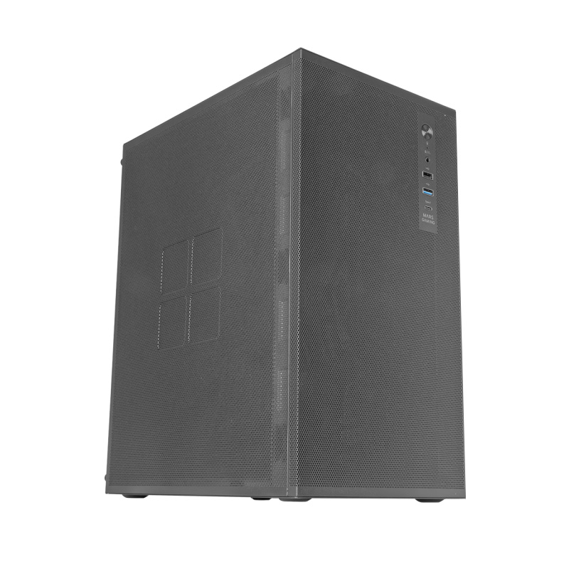 Caja MicroATX / 1×3.5" HDD + 2×2.5" SSD / 1×120 mm PWM incluido / USB 3.0 + USB 2.0 + USB-C / Panel frontal y lateral AirMesh / Negro